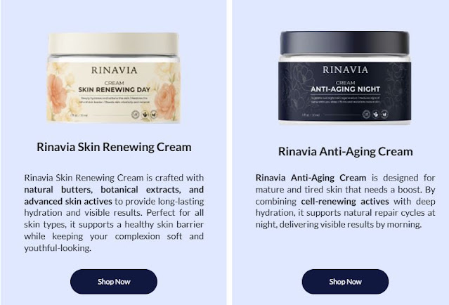 • Rinavia™ Anti-Aging Cream (Night): Rich, repairing, and deeply nourishing while you sleep.